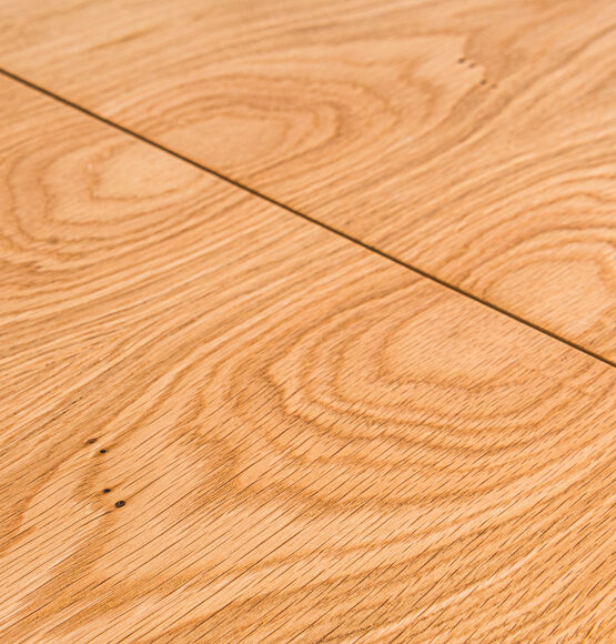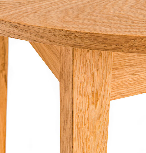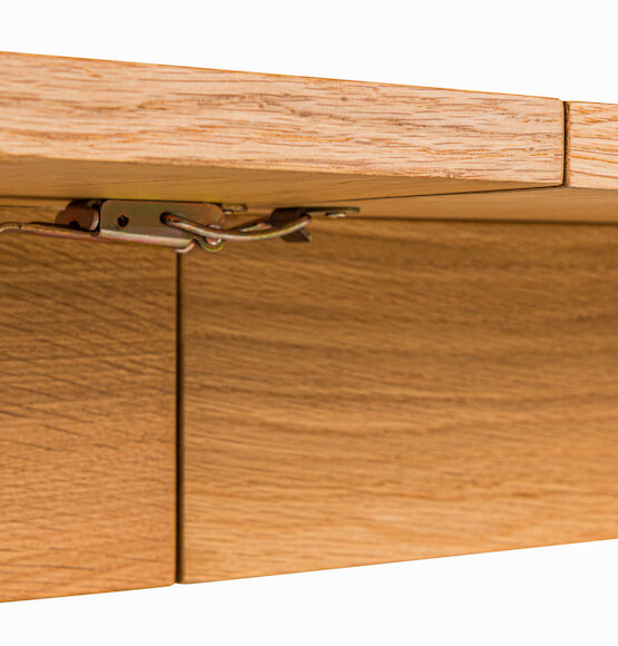 Nogi oraz carga (pozioma belka wspierająca blat) wykonano z litego drewna dębowego. Blat oraz wkładka o grubości 2 cm wykonano ze sklejki liściastej i wykończono fornirem dębowym. Obrzeże – fornir DĄB. Ponadto mechanizm rozsuwania blatu wykorzystuje nowoczesne metalowe prowadnice firmy SISO z ułożyskowaniem kulkowym. Z tego powodu rozłożenie lub złożenie stołu wymaga niewielkiej siły. Blat stołu pokryto lakierem podkładowym, a następnie dwukrotnie twardym lakierem odpornym na alkohol i temperaturę. W ten sam sposób wykończono nogi i cargę.