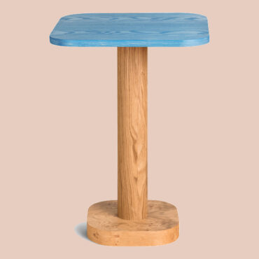 INSPIRACJA: Typowe w latach 50. i 60. stoliki z nogami mocowanymi pod kątem oraz szklanym blatem (kolorowym lub wzorzystym), ale w nowoczesnym wydaniu.