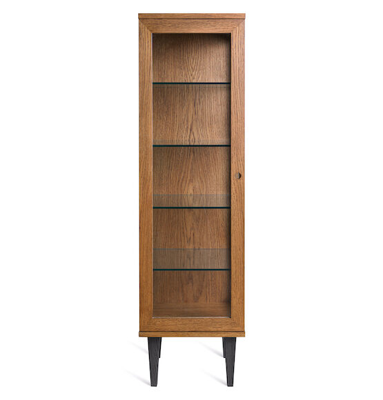 FUNKCJE: Witryna (gablota) Solo to zgrabna, lekka forma i smukłe nóżki. Mebel świetnie wpisze się zarówno w nowoczesne, jak i klasyczne wnętrze – od salonu, przez jadalnię, aż po gabinet. Na szklanych półkach z regulacja wysokości możesz wyeksponować swoje ulubione bibeloty, figurki, serwis kawowy z lat 60-tych lub kolekcję współczesnej ceramiki.